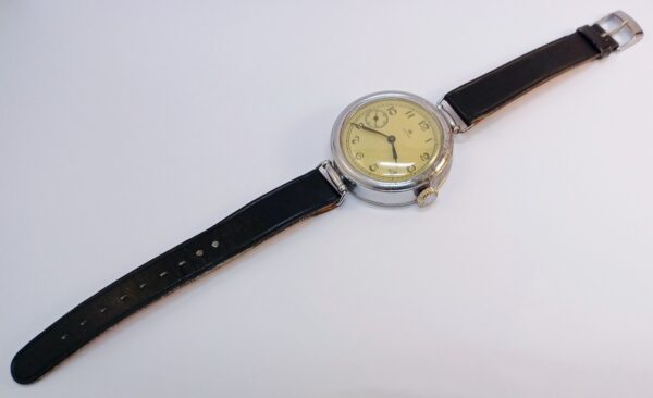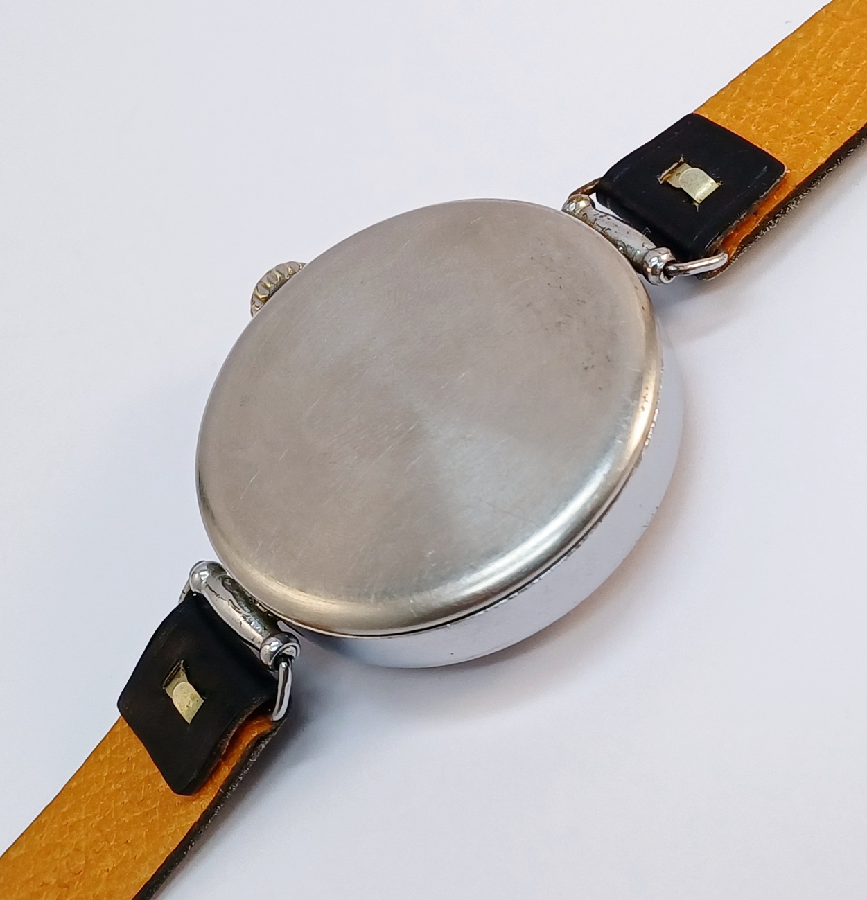 KIROVSKIE K-43. Ww2. Une montre de soldat soviétique datant de 1941. Une des premières produites. Toute d’origine avec son rare fond en acier inoxydable. Le boîtier mesure 43,7mm hors couronne. Cadran sobrement signé Mockba (Moscou). Son mouvement a été intégralement révisé et il est parfaitement fonctionnel, avec une très bonne tenue de l’heure. Bracelet cuir noir.